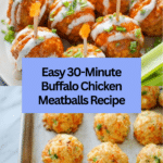 These 30 Minute Buffalo Chicken Meatballs are a quick and flavorful appetizer or main dish featuring ground chicken mixed with fresh veggies and spices, baked to perfection, and tossed in tangy buffalo sauce. Served with ranch or blue cheese dressing, they deliver a perfect balance of spicy and creamy in every bite.
