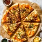 - Garnish and Serve: Remove the pizza from the oven. If desired, sprinkle with freshly chopped parsley. Slice the pizza into 8 pieces and serve warm.