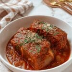 Authentic Italian Braciole are savory meat rolls filled with flavorful ingredients and simmered in a rich tomato sauce. This classic dish offers tender, melt-in-your-mouth bites perfect for a comforting family meal or a special dinner.