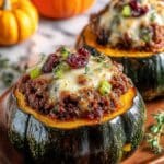 This Autumn Delight Stuffed Acorn Squash recipe is a cozy and flavorful fall dish featuring roasted acorn squash filled with a savory and sweet mixture of Italian sausage, apples, quinoa, and dried cranberries, accented with warming spices and topped with melted cheddar cheese for a comforting meal perfect for seasonal gatherings.