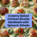 These Baked Chicken Ricotta Meatballs with Spinach Alfredo Bliss offer a comforting and flavorful twist on a classic favorite. Tender chicken meatballs baked to perfection and served in a creamy spinach Alfredo sauce make for a delicious, crowd-pleasing meal.