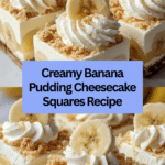 These Banana Pudding Cheesecake Squares combine creamy cheesecake with the nostalgic flavors of banana pudding and a crunchy vanilla wafer crust. They are a perfect make-ahead dessert that’s both rich and refreshing.