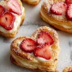 Keywords: strawberry cream cheese danishes, heart-shaped pastries, Valentine’s Day dessert, puff pastry danishes, cream cheese filling
