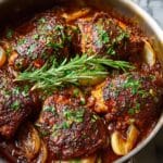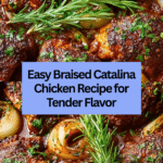 Braised Catalina Chicken features juicy, tender chicken thighs cooked slowly in a tangy and sweet Catalina sauce made from ketchup, apple cider vinegar, honey, and a blend of spices. The chicken is first seared to lock in flavors and then baked slowly to achieve a caramelized, flavorful finish. This comforting dish is perfect for a hearty weeknight dinner and pairs well with rice or mashed potatoes.
