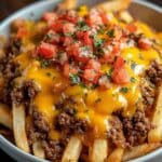 Store any leftovers in an airtight container in the refrigerator for up to 3 days. To reheat, warm in the oven at 350°F (175°C) until heated through and the cheese is melted again. Avoid microwaving to keep the fries crispy.