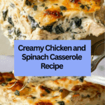 This Chicken and Spinach Casserole with Cream Cheese is a comforting and creamy baked dish perfect for a hearty dinner. Tender chicken cutlets are marinated with garlic and Italian seasoning, layered with sautéed spinach and a rich cream cheese mixture, then baked until golden and bubbly. It’s a delicious way to enjoy a flavorful, cheesy, and nutritious meal in under an hour.