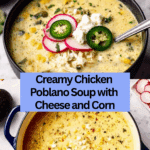 This creamy and flavorful Chicken Poblano Soup features roasted poblano peppers, tender shredded chicken, sweet corn, and a rich blend of cream cheese and white cheddar. Perfectly spiced with Mexican oregano and cumin, this comforting soup is ideal for a hearty meal and can be easily reheated for leftovers.