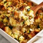 - Step 5: Sprinkle the reserved ½ cup of stuffing mixture evenly over the top.