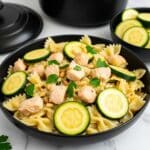 This delicious Chicken Zucchini Pasta recipe combines tender chicken breast, fresh zucchini, and perfectly cooked short pasta tossed in a flavorful mix of garlic, Italian seasoning, lemon juice, Parmesan cheese, pine nuts, and fresh parsley. A light yet satisfying dish that balances protein and vegetables, ideal for a wholesome weeknight meal.