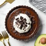 Keywords: chocolate avocado pie, vegan chocolate mousse, no bake chocolate pie, dairy free dessert, gluten free dessert, healthy chocolate pie, avocado dessert