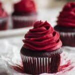 - Frost the Cupcakes: Once cooled, frost each cupcake generously with the beet-chocolate cream cheese frosting. Serve and enjoy this moist and uniquely flavored treat!