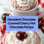 This Chocolate Covered Cherry Hot Chocolate is a festive twist on a classic winter favorite. Creamy milk chocolate hot cocoa is elevated with a splash of maraschino cherry juice and topped with luscious chocolate covered cherries. It’s a delightful treat that’s perfect for cozy evenings.