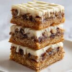 7. Bake the Bars: Bake for 20–25 minutes, or until the bars turn golden brown and a toothpick inserted in the center comes out clean. Remove from the oven and allow to cool completely in the pan before frosting.