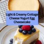 This Cottage Cheese & Yogurt Egg Cheesecake is a light, creamy dessert that combines the tanginess of Greek yogurt with the richness of cottage cheese. It’s a smooth, protein-packed treat perfect for a healthier indulgence.