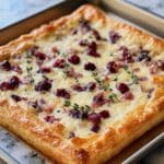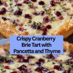 This Cranberry Brie Tart with Pancetta & Thyme combines flaky puff pastry with creamy Brie, tangy cranberry sauce, and crispy pancetta, all accented by fresh thyme. It’s a perfect appetizer or elegant snack ideal for holiday gatherings or special occasions.