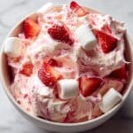 Keywords: strawberry fluff, dessert salad, no bake dessert, strawberry Jell-O, creamy dessert, pudding salad, fruit salad with marshmallows
