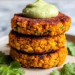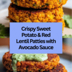 These crispy sweet potato and red lentil patties are a flavorful and nutritious vegetarian dish, perfect as a snack or light meal. Made with a blend of tender lentils, grated sweet potato, aromatic spices, and fresh herbs, they are pan-fried to golden perfection and served with a creamy avocado cilantro sauce for a delightful finish.