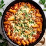- Garnish and Serve: Once cooked, garnish the baked ziti with fresh parsley before serving to add a pop of color and freshness to the creamy, cheesy pasta.