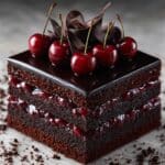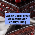 This vegan Dark Forest Cake combines intense cocoa flavors with tart black cherry compote and a glossy black chocolate ganache. Featuring rich layers with a moist crumb, luscious fruit filling, and silky vegan ganache, this dairy-free cake is a dramatic and elegant dessert perfect for special occasions or chocolate lovers looking for a bold twist.