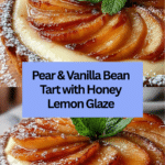 Keywords: Pear tart, vanilla bean tart, French pastry, custard tart, honey lemon glaze, elegant desserts, fruit tart, baked dessert