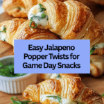 These Delicious Jalapeno Popper Twists are a perfect game day snack, combining creamy, spicy filling wrapped in flaky puff pastry. Easy to prepare and baked until golden brown, these twists offer a delightful mix of sharp cheddar, tangy cream cheese, and zesty jalapenos for a crowd-pleasing appetizer.