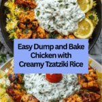 This Dump and Bake Chicken Tzatziki Rice is a simple, flavorful one-dish meal perfect for busy weeknights. With tender chicken, aromatic rice, and creamy homemade tzatziki sauce, it combines effortless preparation with vibrant Mediterranean flavors.