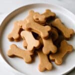 Store these pumpkin dog treats in an airtight container at room temperature for up to two weeks. For longer storage, keep them in the refrigerator for up to a month or freeze for up to three months. Reheat briefly in a low oven if you want to refresh their crunch before serving.