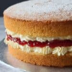 Keywords: Victoria Sponge Cake, British classic, easy sponge cake, all-in-one cake method, raspberry jam cake, whipped cream cake, traditional British dessert