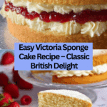 This Easy Victoria Sponge Cake is a classic British treat known for its light, fluffy texture and simple flavors. Made using a convenient all-in-one method, this recipe combines self-raising flour, baking powder, butter, caster sugar, eggs, vanilla, and a splash of milk into a smooth batter that bakes into perfectly golden sponge layers. Filled traditionally with raspberry or strawberry jam and softly whipped cream, this cake is ideal for afternoon tea or any special occasion. The method is beginner-friendly, quick, and consistently delivers a tender, airy cake that’s a timeless favorite.