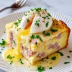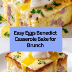 This Eggs Benedict Casserole Bake offers a savory, layered twist on the classic brunch favorite. Featuring diced Canadian bacon, English muffins, and a rich egg custard mix, baked to golden perfection and topped with warm hollandaise sauce and fresh parsley, it’s a convenient and crowd-pleasing dish perfect for festive breakfasts or brunch gatherings.