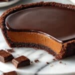 This French Chocolate Flan features a rich and smooth chocolate custard nestled in a delicate chocolate tart base. The custard is made with dark chocolate, eggs, milk, and cream, baked to a silky texture that is set but still slightly jiggly in the center. Finished with a glossy jam glaze, this elegant dessert combines the creamy decadence of flan with a crisp cocoa tart crust, perfect for chocolate lovers seeking a sophisticated treat.