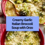 This Garlic Italian Broccoli Soup is a comforting bowl of vibrant flavors and hearty textures. Made with fresh broccoli, garlic, and tender orzo pasta, it’s a simple yet satisfying meal perfect for any day of the week.