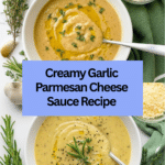 A rich and flavorful Garlic Parmesan Cheese Sauce featuring roasted garlic, fresh herbs, and creamy parmesan, perfect for drizzling over pasta, vegetables, or grilled meats. The sauce combines the deep, mellow taste of roasted garlic with fresh rosemary and thyme, finished with a smooth, cheesy texture.