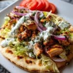 Enjoy the fresh and vibrant flavors of this Greek Chicken Gyros recipe, featuring tender grilled chicken marinated in a lemon-herb blend, served with classic toppings like tzatziki sauce, lettuce, tomatoes, and red onion wrapped in warm pita bread. Perfect for a delicious and healthy Mediterranean-inspired meal.