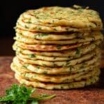 11. Serve and store: Optionally sprinkle the cooked flatbreads with more chopped parsley. Stack them wrapped in a clean kitchen towel to steam slightly and retain softness. Once cooled, store in a ziplock bag and reheat by pan-warming without oil or microwaving wrapped in paper towel on low power.