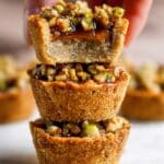 These Healthier Vegan Baklava Cups are a delightful twist on traditional baklava, featuring a wholesome oat flour base, a rich frangipane layer made with ground almonds and flaxseed, and a fragrant pistachio topping with warming spices. Baked to perfection, these mini treats are naturally sweetened with maple syrup and flavored with optional floral notes, making them a guilt-free indulgence that’s perfect for any occasion.