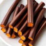 - Storage Tips: Store finished chocolate orange sticks in an airtight container separated by layers of parchment paper at room temperature in a cool environment or refrigerated for up to 7 days.