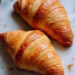 Keywords: homemade croissants, French croissants, flaky croissant recipe, laminated dough, breakfast pastries, baker’s croissant