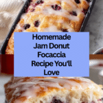 This Homemade Jam Donut Focaccia combines the soft, airy texture of traditional focaccia bread with a delightful sweet twist of raspberry preserves. The dough is enriched with olive oil and layered with jam before baking to golden perfection, then finished with a smooth confectioners’ sugar glaze. Perfect as a unique breakfast treat or a sweet snack, this recipe brings together the best of both worlds — the savory bread-making technique with a flavorful fruity surprise.