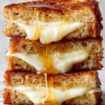 This Honey Sriracha Grilled Cheese recipe combines the creamy richness of sharp cheddar and mozzarella cheeses with a spicy-sweet honey sriracha sauce. Grilled in a skillet to golden perfection, these sandwiches offer a perfect balance of heat and sweetness with a crispy, buttery exterior.
