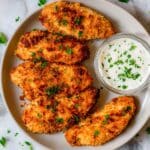 Deliciously crispy Keto Fried Chicken Tenders marinated in tangy pickle juice and coated with a low-carb almond flour and pork panko crust. Perfect for a satisfying, high-protein, low-carb meal that’s easy to prepare and fried to golden perfection in avocado oil.
