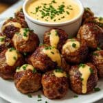 Store leftover meatballs in an airtight container in the refrigerator for up to 3 days. Reheat gently in a microwave or oven until warmed through. The spicy mayo dip can be stored separately in the fridge for up to 1 week.