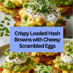 Loaded Hash Browns with Scrambled Eggs is a hearty and flavorful breakfast dish that combines crispy potatoes, fluffy eggs, and melted cheese with fresh veggies. It’s perfect for starting your day with a satisfying and delicious meal.