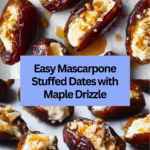Delightful and easy-to-make Mascarpone Stuffed Dates with a rich maple drizzle, toasted pecans, and a lightly broiled finish. This sweet and creamy appetizer combines the natural sweetness of Medjool dates with the smoothness of mascarpone cheese, enhanced by the nutty crunch of pecans and the warm richness of maple syrup.