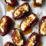 Delightful and easy-to-make Mascarpone Stuffed Dates with a rich maple drizzle, toasted pecans, and a lightly broiled finish. This sweet and creamy appetizer combines the natural sweetness of Medjool dates with the smoothness of mascarpone cheese, enhanced by the nutty crunch of pecans and the warm richness of maple syrup.