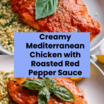 This Mediterranean Chicken with Roasted Red Pepper Sauce is a flavorful and creamy dish perfect for a weeknight dinner or entertaining guests. Tender chicken thighs or breasts are cooked to perfection and coated in a rich, vibrant roasted red pepper sauce with hints of garlic and Italian herbs.