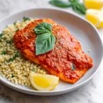 This Mediterranean Chicken with Roasted Red Pepper Sauce features tender boneless skinless chicken thighs cooked to perfection in a creamy, flavorful sauce made from roasted red peppers, garlic, and Italian seasoning. Enhanced with a touch of feta cheese and fresh basil, this dish strikes a beautiful balance between hearty and fresh, perfect for a wholesome dinner served alongside a green salad or your favorite grain.