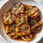 This Miso Maple Braised Leeks recipe features tender, caramelized leeks perfectly balanced with savory miso, sweet maple syrup, and umami soy sauce, all roasted to golden perfection. Finished with a bright lemon zest garnish, this elegant side dish combines rich flavors and a luscious texture ideal for elevating any meal.