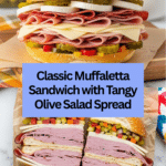 The Muffaletta Sandwich is a flavorful Italian-American classic, known for its hearty layers of meats, cheeses, and a tangy olive salad spread. Perfect for a satisfying lunch or picnic, this sandwich blends bold and savory flavors in every bite.