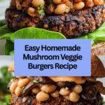 Delicious and hearty mushroom veggie burgers made with cremini mushrooms, walnuts, barley, and beans, flavored with garlic, thyme, smoked paprika, and vegan Worcestershire sauce. These baked patties offer a wholesome, satisfying plant-based alternative that’s perfect for a nutritious lunch or dinner.